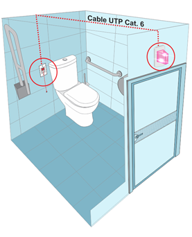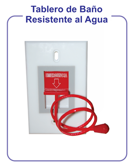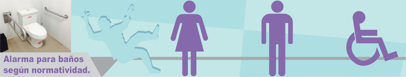 Los baños deben contar con una alarma visual y sonora, para evidenciar una caída o emergencia en el baño. La persona dentro del baño, puede activar la estación instalada en la pared.